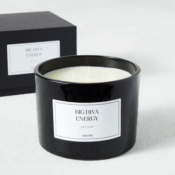 Presented in a black glass vessel with a tonal leopard print and sassy saying, this triple-wick candle features a lush apricot scent and arrives in a handsome box, ready for gifting.