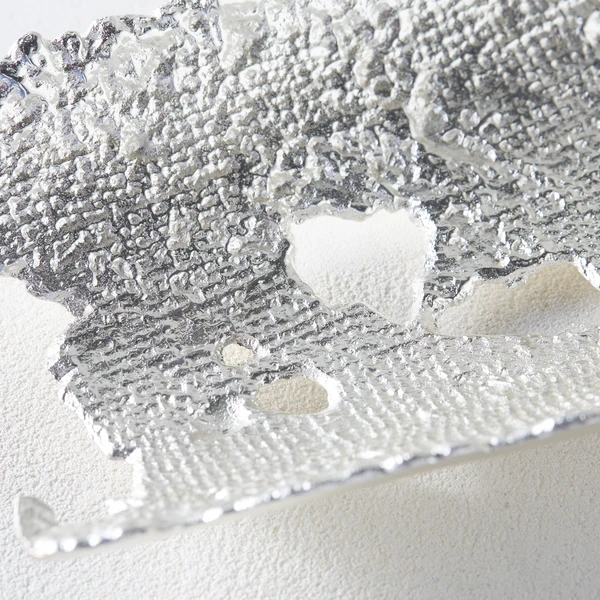 With its freeform shape and wonderful texture, this decorative plate brings organic allure to its surroundings, while a silver finish adds a chic, modern touch.