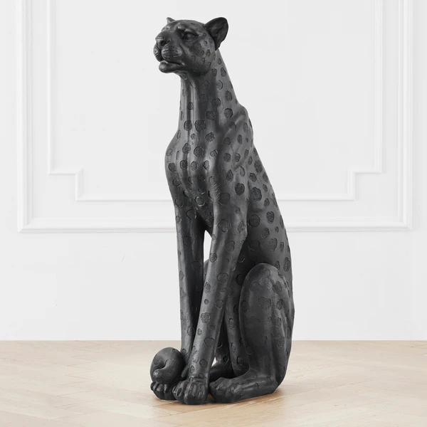Our regal Leopardo figure stands for the height of elegance. Sculpted in lightweight resin, this 3-foot tall gold statue reigns the room.