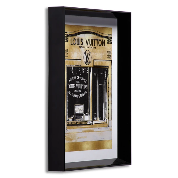 Ideal for adding a luxe note to your space, the glam storefront prints in this series are rendered in black, white, and gold and come beautifully framed.
