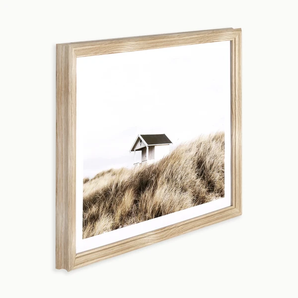 Ocean View 1 is a framed graphic under glass with a light blonde angled profile frame. 1 of is a series.
