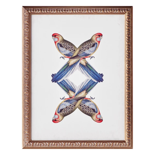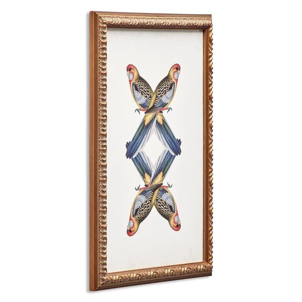 Set off with a gold frame, this eye-catching parrot print adds a whimsical note to any space.